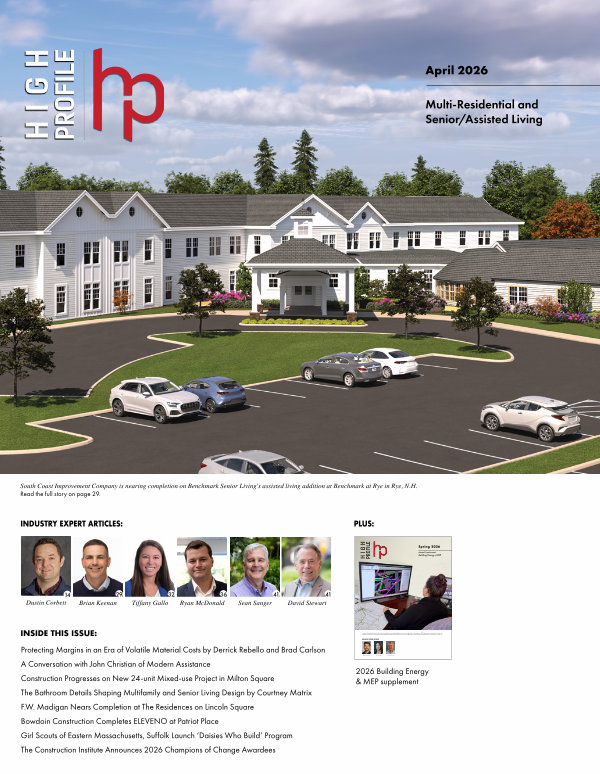 INSIDE THIS ISSUE: Protecting Margins in an Era of Volatile Material Costs by Derrick Rebello and Brad Carlson A Conversation with John Christian of Modern Assistance Construction Progresses on New 24-unit Mixed-use Project in Milton Square The Bathroom Details Shaping Multifamily and Senior Living Design by Courtney Matrix F. W. Madigan Nears Completion at The Residences on Lincoln Square Bowdoin Construction Completes ELEVENO at Patriot Place Girl Scouts of Eastern Massachusetts, Suffolk Launch‘ Daisies Who Build’ Program The Construction Institute Announces 2026 Champions of Change Awardees