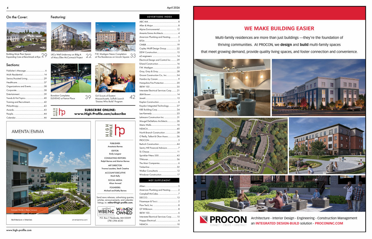ABC MA....................................................... 8 Allen & Major.............................................. 8 Alpine Environmental................................ 12 Amenta Emma Architects............................ 4 American Plumbing and Heating............... 2 BTEA............................................................. 3 CM & B......................................................... 19 Copley Wolff Design Group.................... 22 DEW Construction..................................... 15 e2 engineers............................................. 14 Electrical Design and Control Inc............ 29 Erland Construction................................... 16 F. W. Madigan............................................ 33 Gray, Gray & Gray................................... 28 Groom Construction Co., Inc................... 34 Hambro by Canam..................................... 9 Hampshire Fire Protection........................ 20 IBEW 103.................................................. 35 Interstate Electrical Services Corp........... 21 J & M Brown................................................ 14 Jewett.......................................................... 13 Kaplan Construction................................... 6 Kaydon Integrated Technology............... 27 KBE Building Corp..................................... 24 Lee Kennedy.............................................. 23 Lehmann Construction Inc........................ 31 Maugel DeStefano Architects.................. 26 Metro Walls............................................... 10 NEMCA...................................................... 40 North Branch Construction...................... 28 O’ Reilly, Talbot & Okun Assoc................. 26 PROCON..................................................... 5 ReArch Construction................................. 44 Sentry Hill Financial Advisors.................... 7 SL Chasse................................................... 11 Sprinkler Fitters 550.................................. 43 TFMoran..................................................... 36 The Marr Companies.................................. 6 Timberline................................................... 32 Walker Consultants.................................. 12 Windover Construction............................. 17