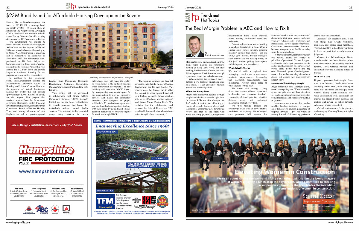 The development will include 32 homes rented to households earning up to 50% of area median income (AMI) and 24 homes rented to households earning up to 30% of AMI. Construction is underway and is expected to be completed in September 2027. The tax-exempt bond, purchased by TD Bank, helped the borrower achieve a lower cost of capital; Massachusetts Housing Partnership will assume the TD Bank bond and provide long-term fixed-rate financing for the project upon construction completion.