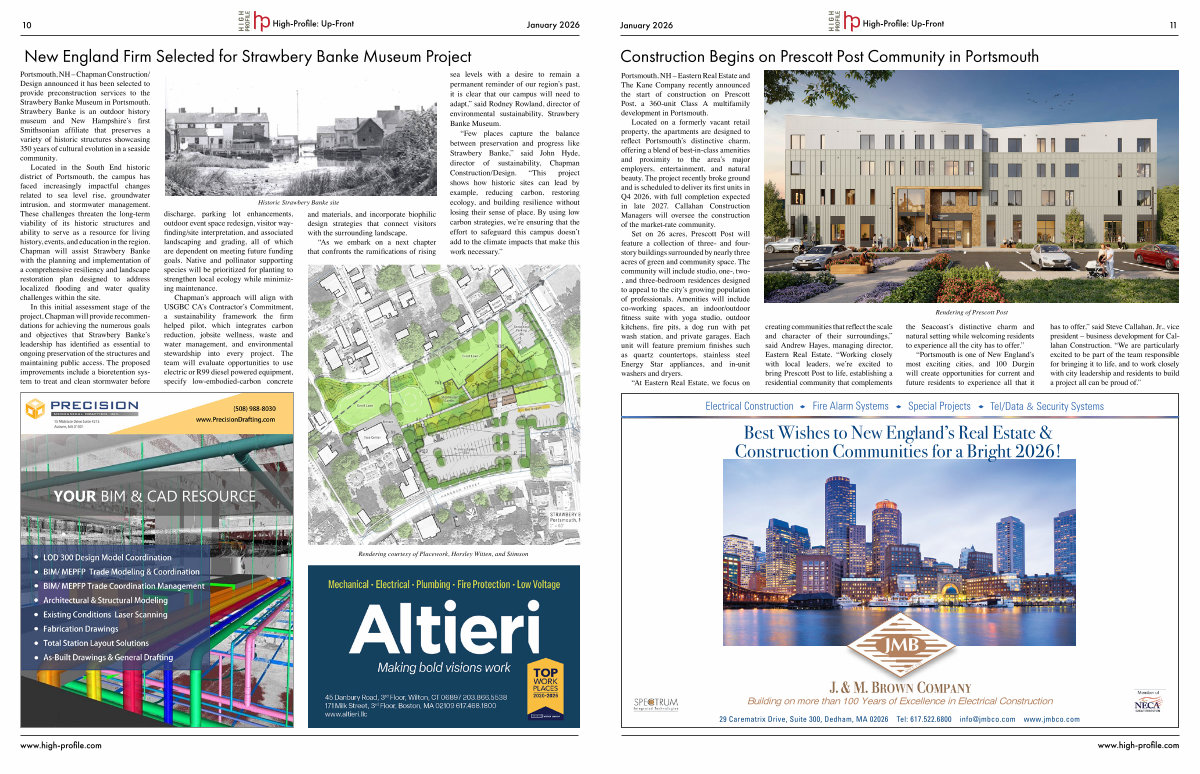 Located on a formerly vacant retail property, the apartments are designed to reflect Portsmouth’s distinctive charm, offering a blend of best-in-class amenities and proximity to the area’s major employers, entertainment, and natural beauty. The project recently broke ground and is scheduled to deliver its first units in Q4 2026, with full completion expected in late 2027. Callahan Construction Managers will oversee the construction of the market-rate community.