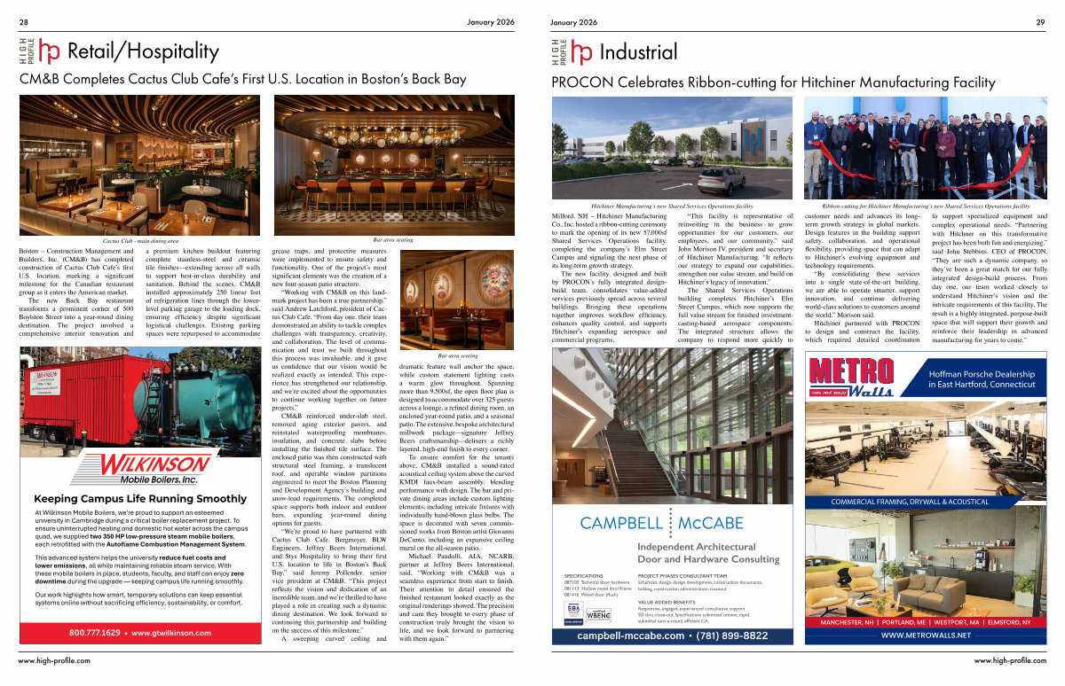 Hitchiner partnered with PROCON to design and construct the facility, which required detailed coordination to support specialized equipment and complex operational needs. “Partnering with Hitchiner on this transformative project has been both fun and energizing,” said John Stebbins, CEO of PROCON. “They are such a dynamic company, so they’ve been a great match for our fully integrated design-build process. From day one, our team worked closely to understand Hitchiner’s vision and the intricate requirements of this facility. The result is a highly integrated, purpose-built space that will support their growth and reinforce their leadership in advanced manufacturing for years to come.”