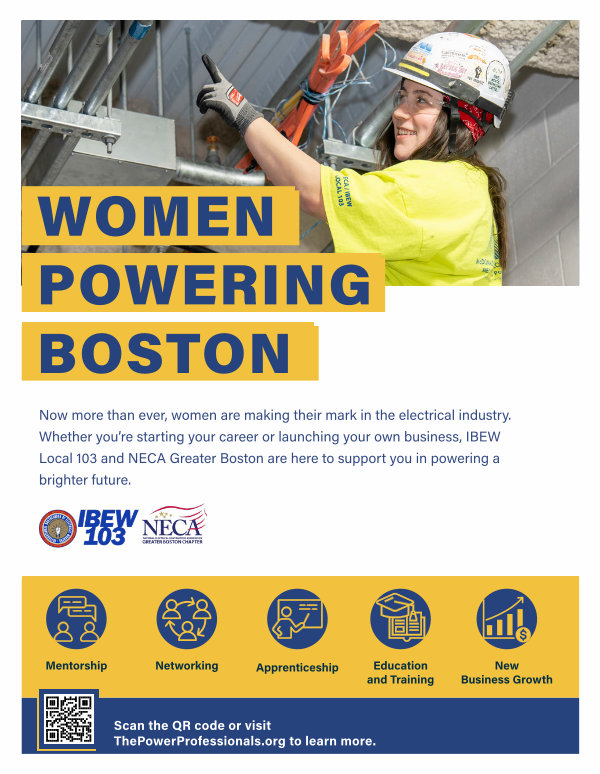 Now more than ever, women are making their mark in the electrical industry. Whether you’ re starting your career or launching your own business, IBEW Local 103 and NECA Greater Boston are here to support you in powering a brighter future.